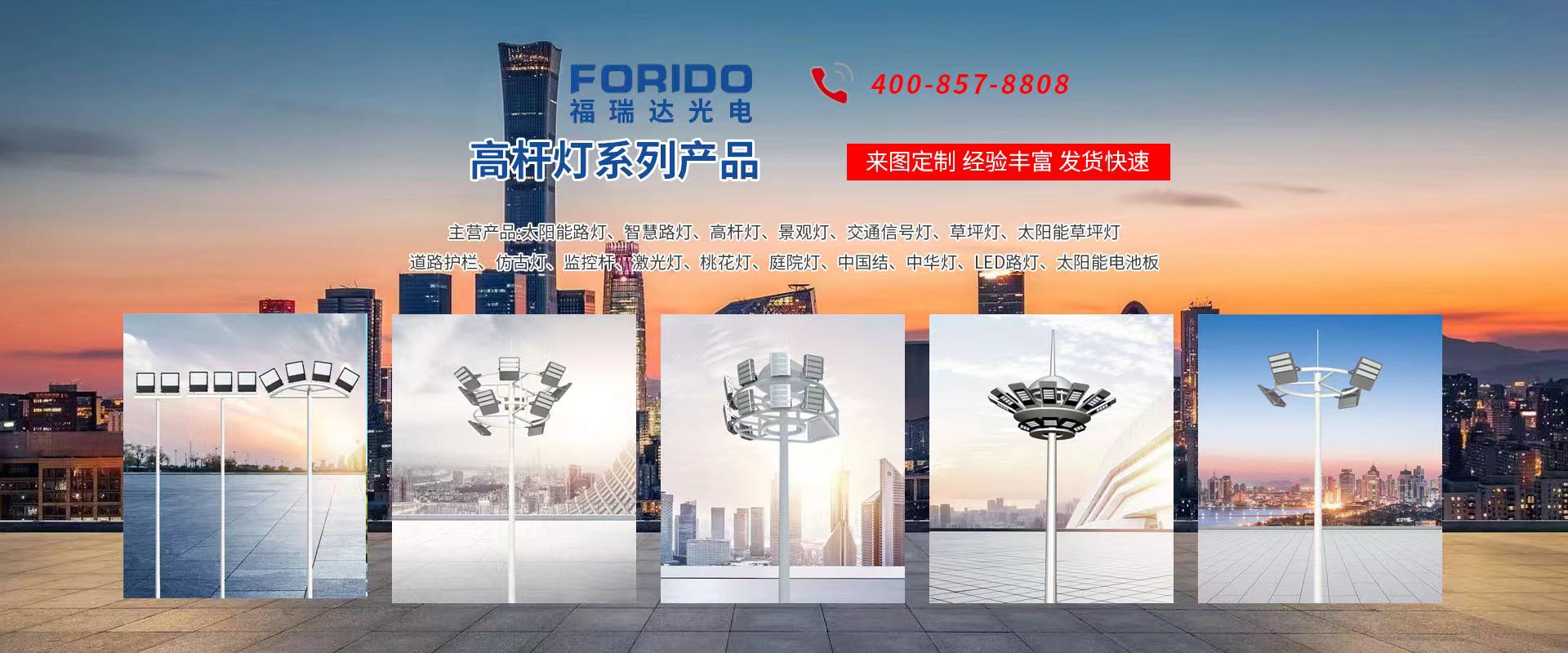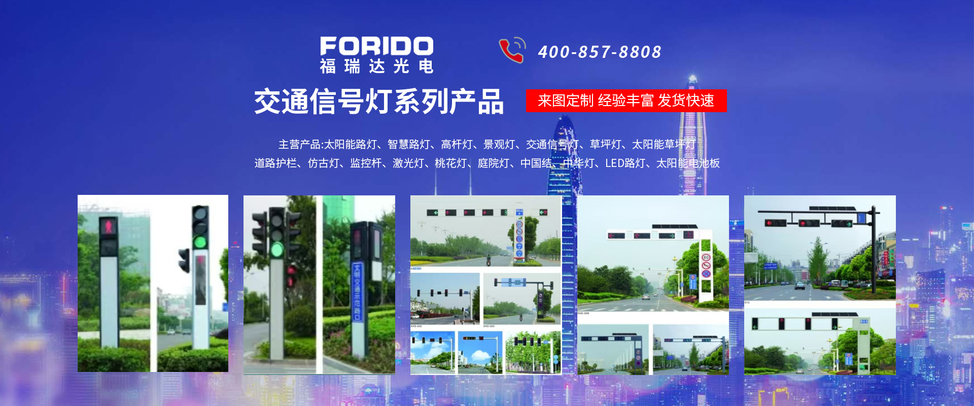 揚州福瑞達光電科技有限公司位于淮左名都歷史文化名城、中國路燈制造基地揚州市北郊菱塘工業園,公司占地面積76000平方米,注冊資金10518萬元,擁有高級技術嫻熟的員工280多人,擁有大型折彎機、激光切割、數控注塑機、壓鑄機、自動埋弧焊、氣焊、彩色粉末靜電噴塑等大型自動化設備,我公司是一家集設計、研發、生產、銷售、施工安裝服務為一體的戶外交通照明產品制造商,主要生產智慧路燈、太陽能路燈、LED路燈、高桿燈、景觀燈、交通信號燈、交通標志牌、通信鐵塔、路跨鋼結構、公交站臺、太陽能光伏組件、景點亮化、樓宇亮化工程的設計施工等。公司秉承開拓創新、銳意進取、精誠服務的企業精神,堅持以“誠信為本、技術為先、服務是金”的合作理念,我們憑借先進的制造工藝、優質的產品質量、合理的市場價格和完善的售后服務贏得了廣闊的市場和客戶的信賴?! ∥夜疽淹ㄟ^ISO9001質量體系認證、ISO14001環境管理體認證,CQC產品認證,中國節能產品認證,通過“CCC”強制性產品認證,具有市政總承包,照明,交安,設計等資質···